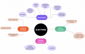 We looked at 5 examples to map the different roles that organizations are taking to build power and lead to success in the elections that follow; base-building, political education, policy campaigns and internal pressure.